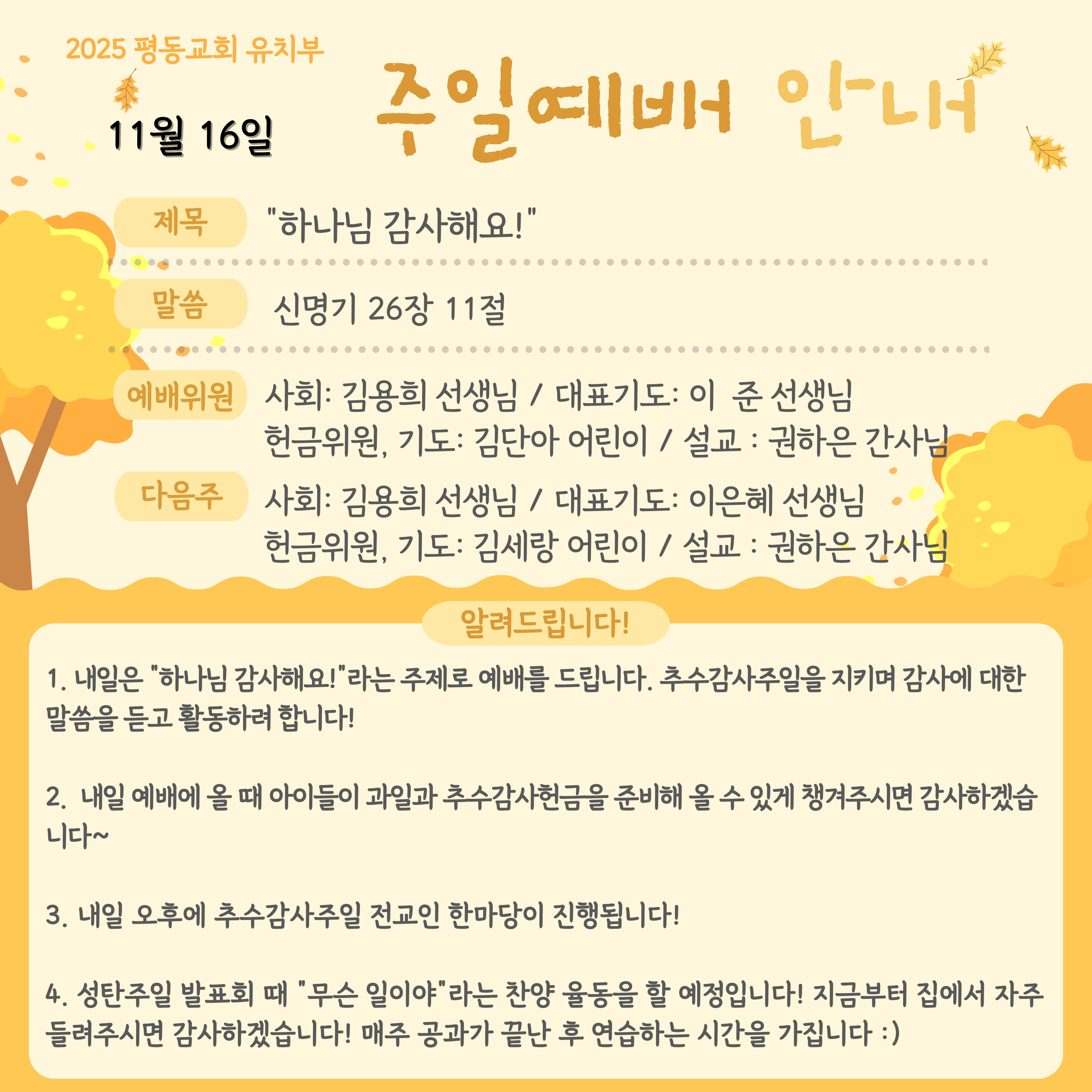 11월 16일 주일예배