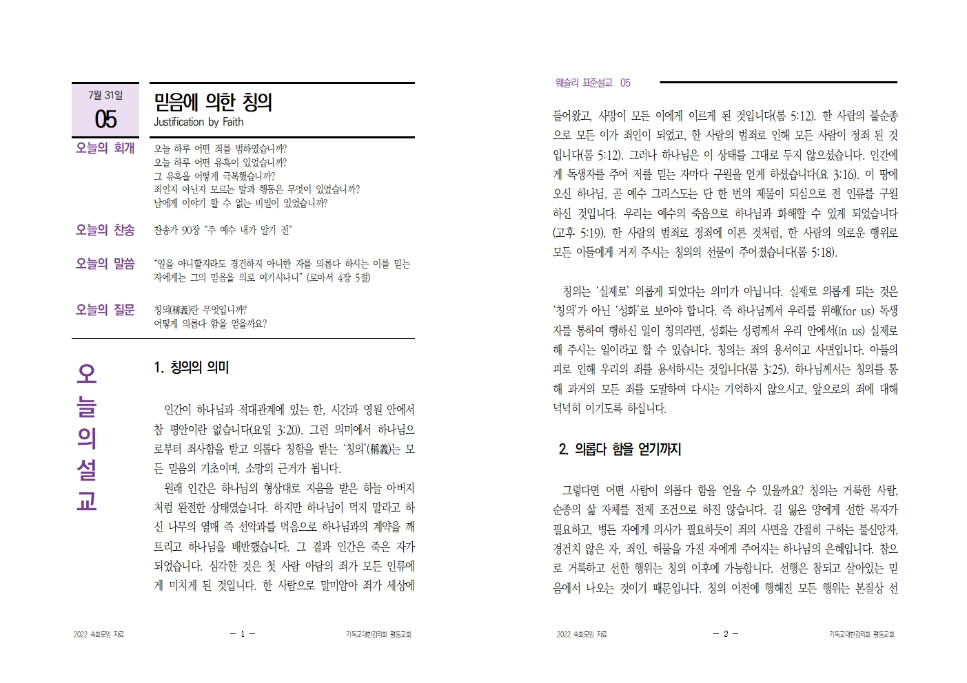 7월 27일_표준설교 05 믿음에 의한 칭의