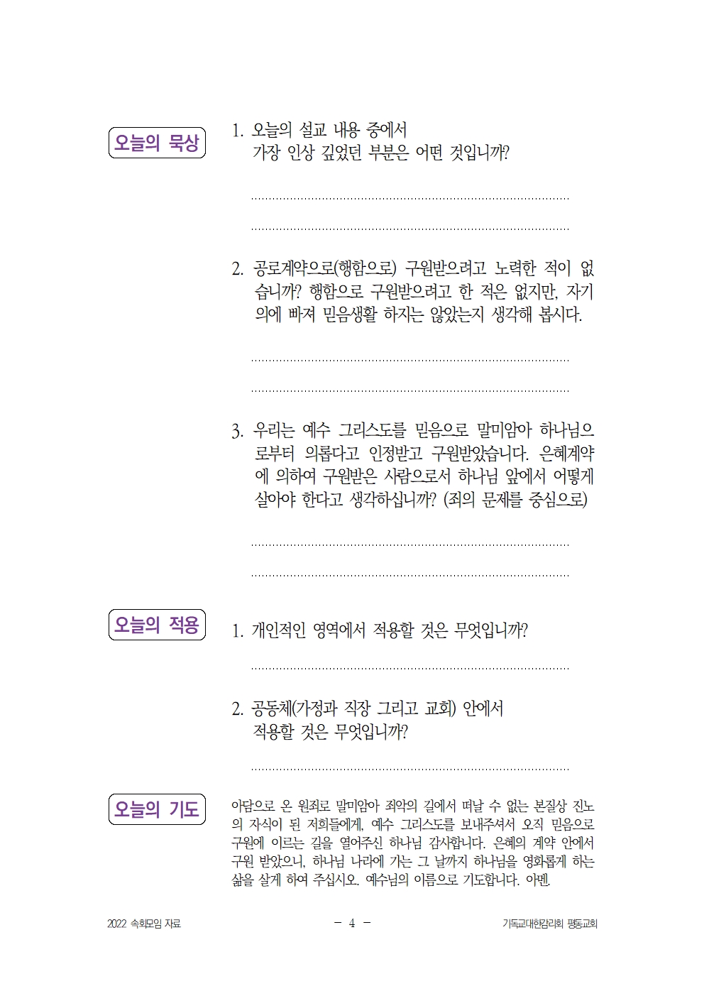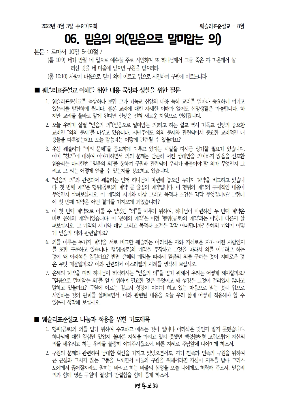 아울러 수요예배에서 사용한 참고자료(1면)를 첨부합니다.