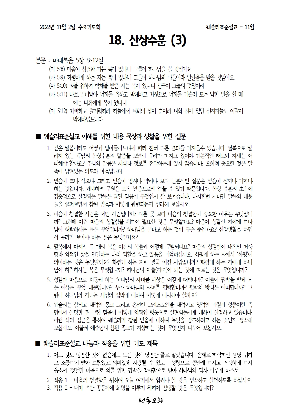 표준설교 18. 산상설교 (3)