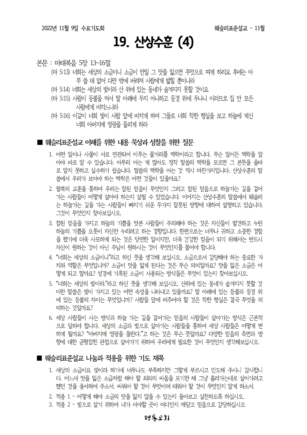 표준설교 19. 산상설교 (4)