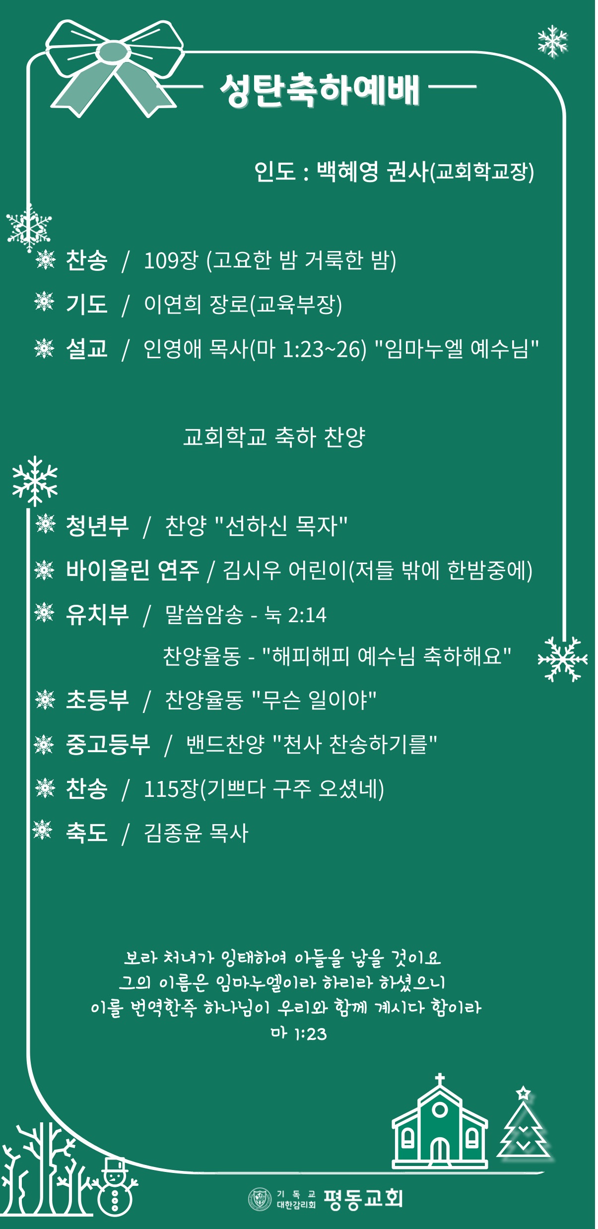 12월 24일 성탄축하예배+발표회