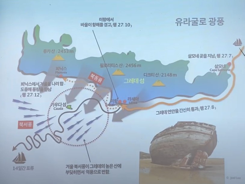 바울의 권고 대신 선장과 선주의 말을 들었던 이들은 결국 불편한 미항 대신에 조금더 크고 편의시설이 잘 되어 있었던 뵈닉스항으로 옮기기로 결정합니다. 거리상으로 보아도 뵈닉스까지는 그다지 멀지 않아서 얼마든지 움직일수 있을 것이라 판단했습니다. 그래서 백부장 율리오 일행을 태운 알렉산드리아 배는 항구를 떠나게 되었습니다. 처음에는 남풍이 순하게 불어왔습니다. 이때만 해도 이들은 자신들의 뜻을 이룬 것이라 생각했습니다. 하지만 이들이 출항한지 얼마되지 않아서 유라굴로라는 광풍을 만나고 말았습니다. 이들의 여정은 이때부터 더욱 위험하게 흘러가게 되었습니다. 일은 끝까지 봐야 합니다. 처음이 좋다고 다 좋은 것은 아닙니다. 끝까지 겸손하고 마지막까지 신실해야 하는 이유가 바로 여기에 있습니다. ∙ 구원의 여망마저 없어졌더라 – 최고의 기회는 가장 절망적일 때 찾아옵니다.