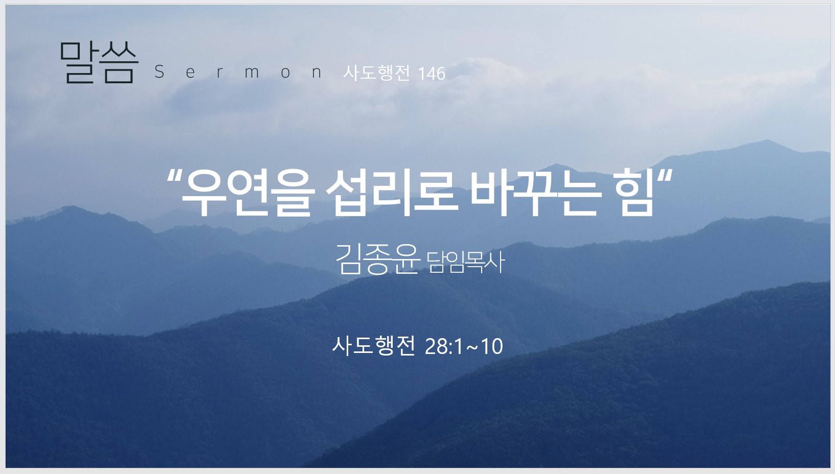 바울 역시 다른 사람들과 같이 부서지고 있던 배에서 나와 무사히 땅을 밟게 되었습니다. 마침 비가 오고 날이 차서 그런지 원주민들은 바울 일행을 불쌍히 여겨서 그랬는지 불을 피워 추위를 면하게 했습니다. 자리를 잡고 앉은 바울이 사그라들던 불씨를 살리려고 나무 한 묶음을 집어넣다가 그만 그 안에 함께 있던 독사에게 물리게 되었습니다. 갑자기 생각지 않았던 일을 당하게 된 바울의 모습을 보면서 사람들은 혀를 차며 부정적인 생각을 했습니다. 아무래도 좋은 결과는 기대하기 어려운 상황이었습니다. 하지만 바울은 아무 일도 없었다고 하는 듯이 자신을 물었던 독사를 그냥 불에 떨어 버렸습니다. 생각지 못한 문제로 인하여 긴장하게 되지만 반드시 기억해야 합니다. 우리는 생각지 못했던 문제 때문에 망하는 사람이 아닙니다.