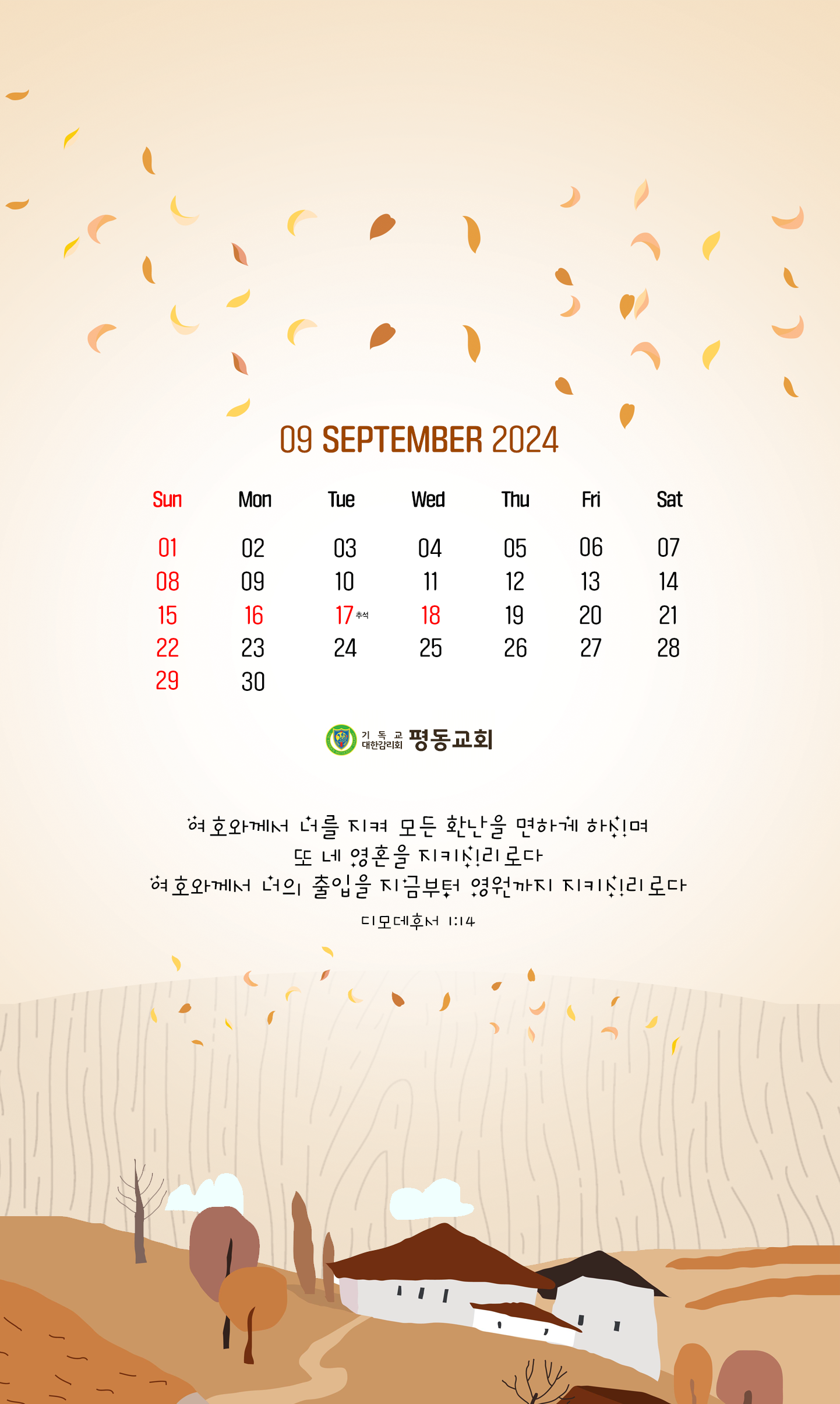 9월 평동교회 휴대폰/PC 배경화면입입니다